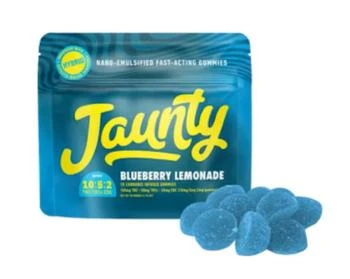 10 x 10mg THC + 5mg THCv + 2mg CBC - Jaunty knows how to put a little pep in your step, whenever you need it most. These energizing, fast-acting gummies are crafted with a blend of THC, THCv, CBC, and hybrid effects-based terpenes. This balanced profile is sure to elevate your mood, boost your energy, and enhance your focus - ideal for day-to-day adventures.