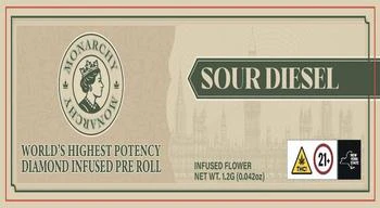 A powerful, flavor-forward preroll from Monarchy. This Diamond infused preroll features the iconic “Sour Diesel” terpene profile. Pungent diesel, bright citrus, and a sharp lemon finish. The high opens with an energetic uplift and cerebral clarity, then transitions into a relaxed, focused body ease.