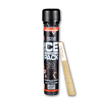 Rove Ice Packs, the world's first triple-infused preroll. Made with premium-grade flower fully infused with THCA diamonds and solventless ice hash rosin, theyre expertly rolled, then coated with more ice hash. Super smooth and ultra potent, Rove Ice Packs test up to 50% THC. Welcome to the next evolution of prerolls.